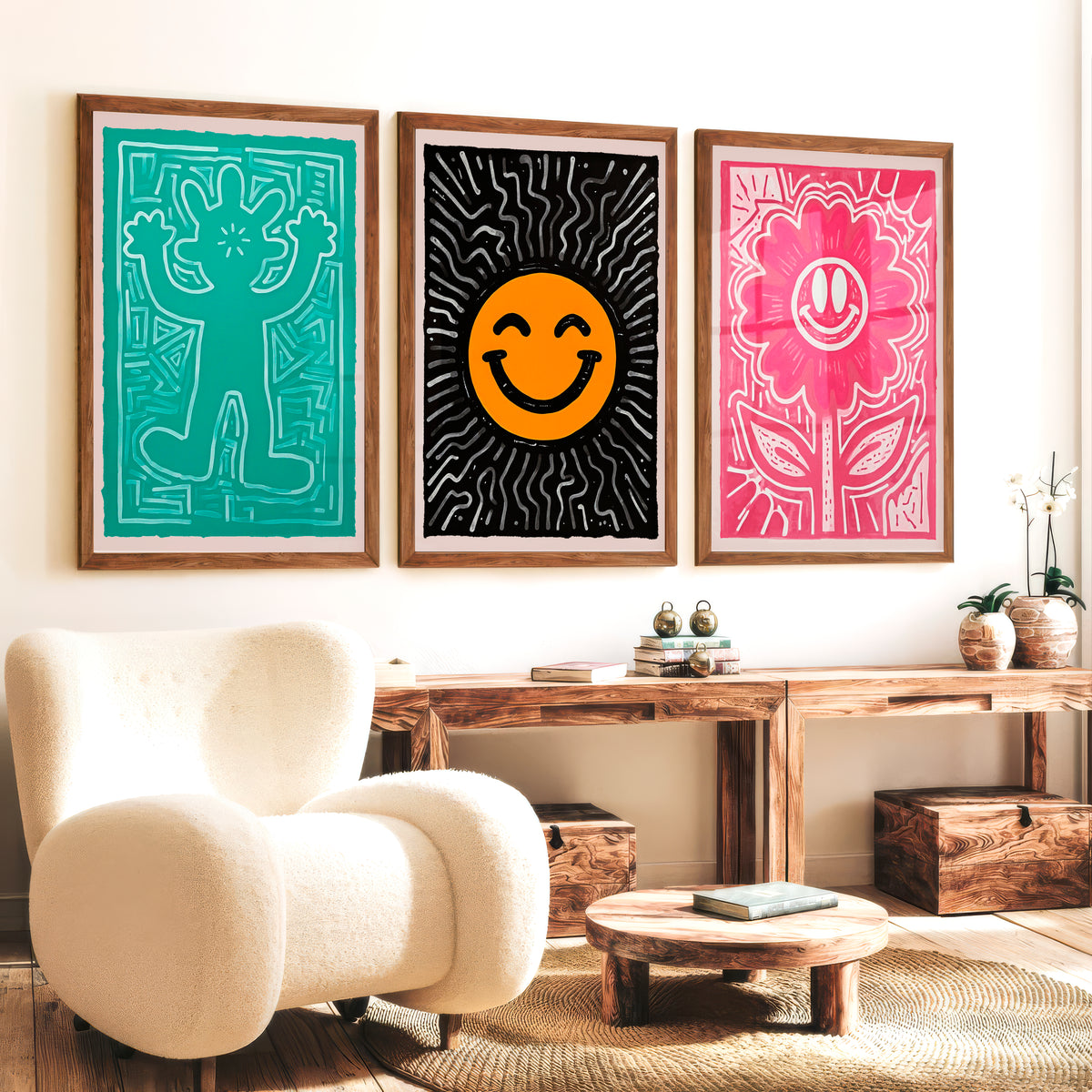 Funky Wall Art Groovy Poster Trendy Decor Set of 3