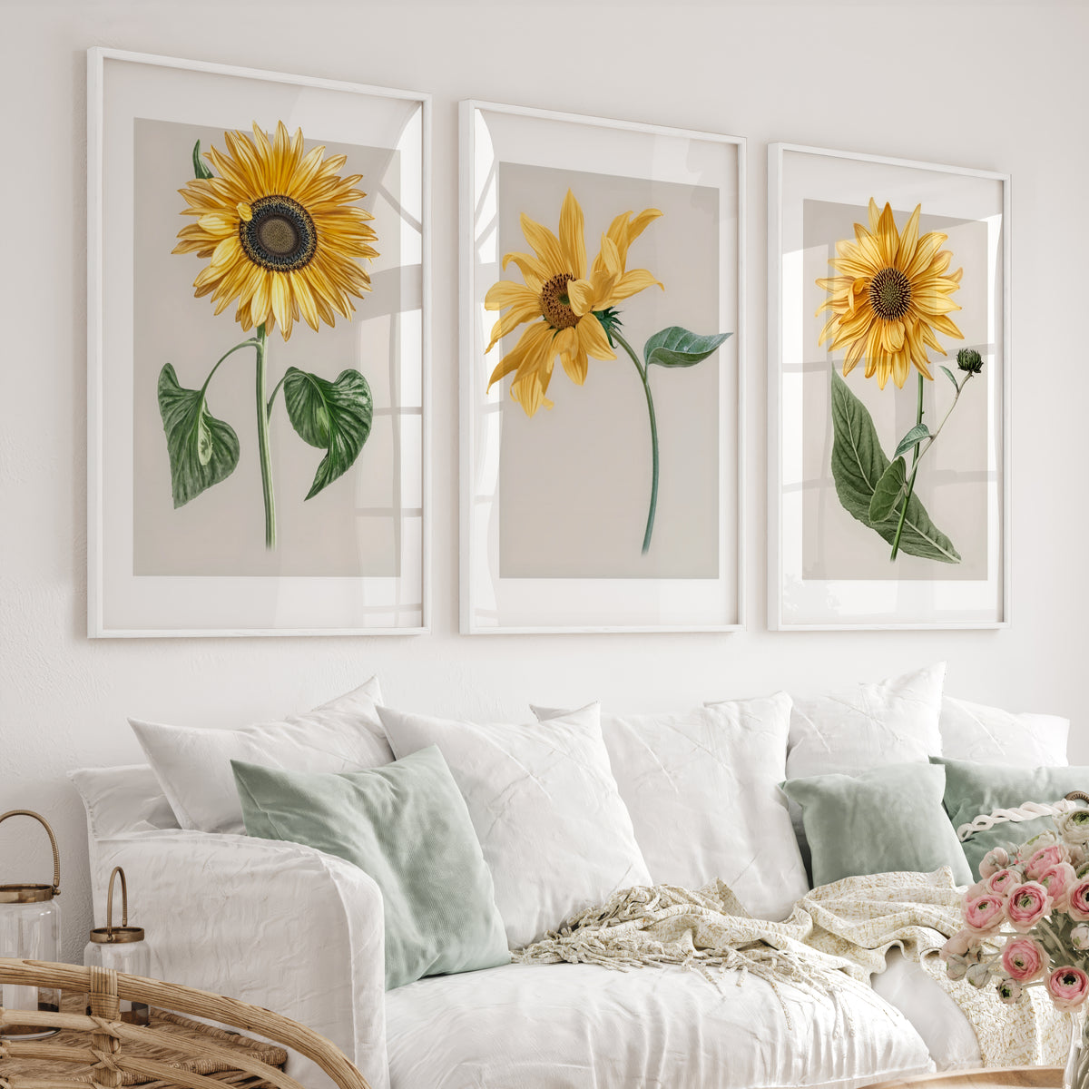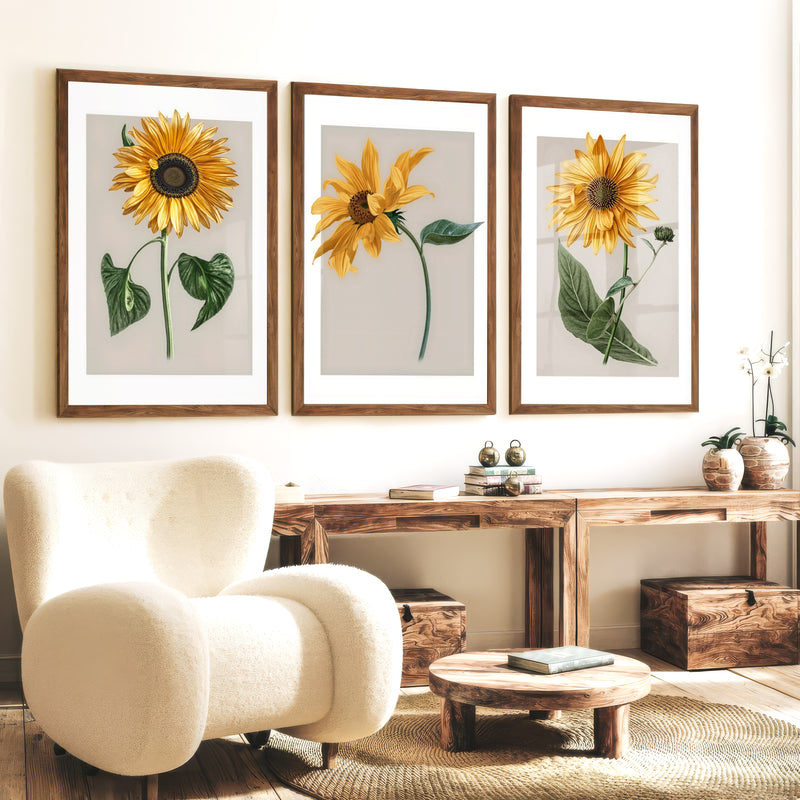 Botanical Wall Decor Sunflower Floral Print Set of 3