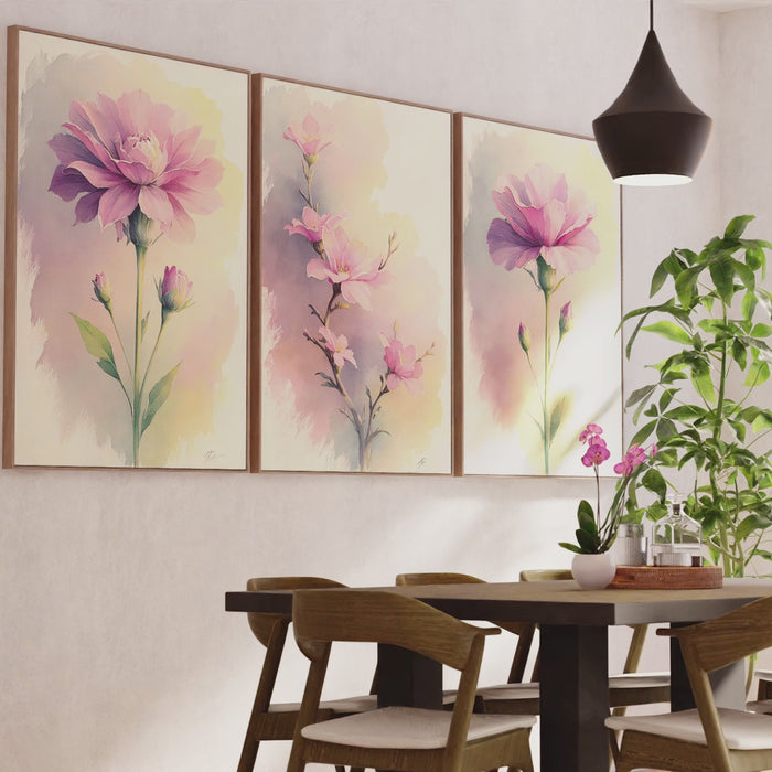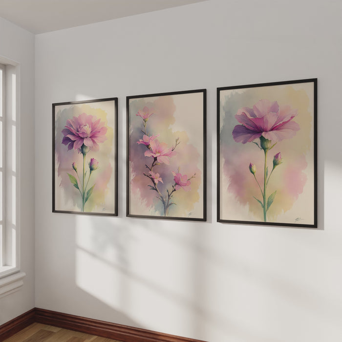Botanical Artwork Prints – Pink Floral Watercolor Set of 3