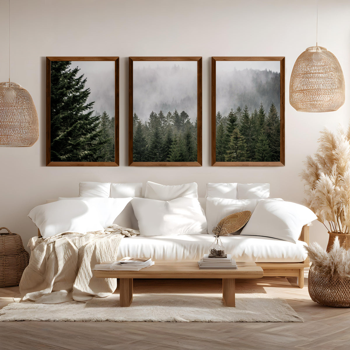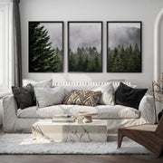 Green Pine Tree Forest and Large Mountain Wall Art Print