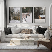 Wall Art Winter Triptych – Deer, Snowy Forest & Cabin - Unframed / No Border / 5x7 inches