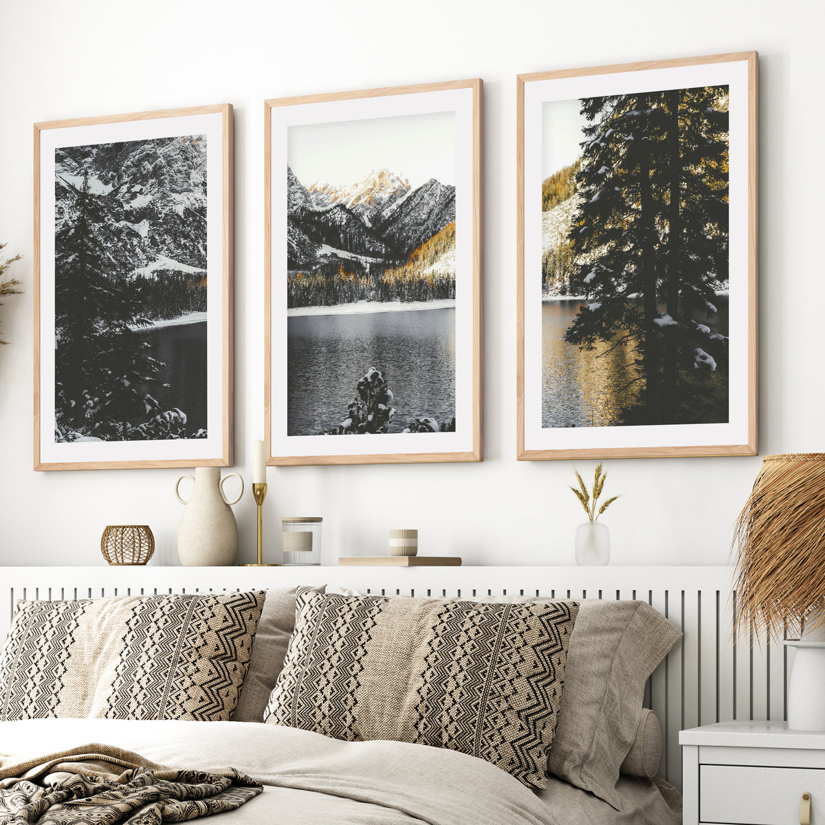 Scandi Nature Triptych. Mountain Lake Photography - Unframed / No Border / 5x7 inches